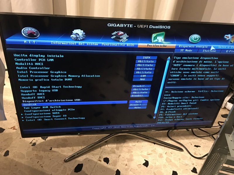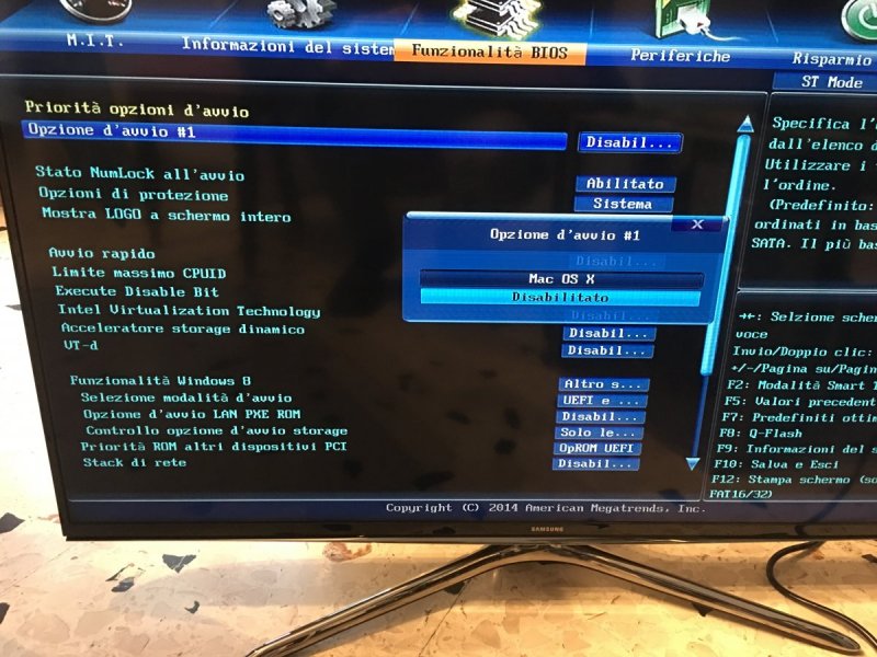 Buongiorno a tutti, anzitutto mi scuso se non è la sezione adatta ma ho un problema da diversi giorni che non riesco a risolvere e non so più cosa fare. Ho una macchina con motherboard GIGABYTE Z97X-UD3H-CF, processore INTEL I7-4790K CPU @ 4.00GHZ (Haswell) ed un banco di ram CRUCIAL BALLISTIX SPORT da 8GB. Su tale macchina vi era già un hackintosh con dual boot (Sierra e Win7). Circa una settimana fa ho provato, facendo un’installazione pulita, ad installare macOS Mojave. Ho creato la mia pen usb 2 (16GB) con Clover ed iniziato l’installazione. L’installazione è andata bene e quando è arrivato il momento di formattare il disco (un SSD Samsung 840 EVO 120 GB) con utility disk ho formattato tutto il disco in APFS (la partizione win 7 non mi serviva più). Successivamente, però, quando ho fatto ho selezionato la voce installa macOS Mojave mi sono accorto che il certificato della mia installazione Mojave era scaduto e non mi consentiva di proseguire l’installazione. Dopo aver provato senza successo a cambiare la data con il terminale, mi sono deciso a creare una nuova chiavetta usb con un installer di Mojave non scaduto. Ho scaricato nuovamente Mojave dall’App Store con il mio MacBook Pro (con installato proprio Mojave) e ho ricreato con Clover la mia usb installante. Quando l’ho inserita nel computer e riavviato lo stesso per iniziare la procedura di installazione mi è apparsa la scritta “Reboot and Select proper Boot device or insert Boot Media in select Boot device and press a key”. Ho provato in tutti I modi, ho creato più chiavette diverse (usb 2 e 3), ho spostato le chiavette in più prese usb, ho scollegato tutto (hard disk, prese lan, etc.), ho creato chiavette anche con unibeast, etc ma niente mi da sempre lo stesso errore. La chiavetta viene vista (è attivata la funzione legacy usb nel BIOS) ma è come se non vi fosse l’installer La cosa più strana è che nel BIOS tra le opzioni di avvio, anche scollegando tutto (sia la penna usb che l’ssd, in pratica vi è solo la scheda madre accesa) mi appare come voce Mac OS X. Com’è possibile? Vi posto una immagine per farvi capire. Non so veramente cosa fare (forse dovrei resettare il BIOS della Gigabyte, ma ho un po’ di timore), secondo voi cosa è successo, avete qualche suggerimento? Grazie
