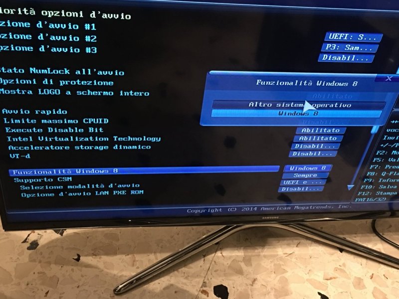 Quindi nel BIOS alla voce "Funzionalità di Windows 8" invece di altri sistemi operativi lascio selezionata la voce Windows 8 ? (Strano è il contrario di quanto suggerito da tutte le guide ma nel mio caso è l'unico modo per far apparire la voce CSM e disabilitarlo). Per "configurare la EFI a modo" intendi dire che devo rifare la chiavetta? La procedura che ho descritto sopra con le foto passo-passo è sbagliata? Cosa mi suggerisci per farla a modo? Scusami per le tante domande e grazie ancora per il tuo prezioso aiuto Gengik844.