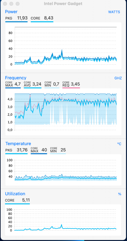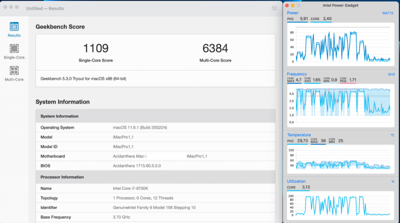 Siccome faccio parte del Club "Z390 Aorus Pro" e non avendo un serie 9000 ma l'8700k che è spravvissuto alla z370, fritta manco a dirlo per colpa mia 😓😓 mi sono messo all'opera. Ho seguito alla lettera ( Grazie della pappa pronta 😂😂) alla fine ripoto il confronto. Senza CPUFriend nella prima immagine sono riportati i valori ottenuti durate un test CPU GB5 e nella successiva i valori riportati dopo qualche minuto di inattività. Con CPUFriend stesso discorso prima immagine sono riportati i valori ottenuti durate un test CPU GB5 e nelle successive i valori riportati dopo qualche minuto di inattività (si ne fo fatte più d'una perchè era troppo bello, le frequenze scendono). Se c'è qualche ulteriore miglioria io sono sempre disposto a fare da cavia 🤣. Grazie ancora per le dritte