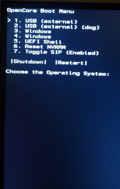 Ho dato boot opzione 2 da DMG ma ora schermo led lampeggia e non vedo nulla. Dopo aver visto codici che scrollavano veloci. Nulla non fa boot Praticamente vedo il menù OpenCore , dò spazio faccio reset nvram e poi seleziono opzione 2 , external USB DMG. Invio e adesso monitor lampeggia led e non vedo nulla