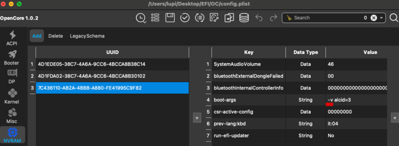 19. nel dubbio ho messo in inglese perche' carichi prima di installare i kexts OCLP ? ( se installa la modifichi dopo ) why BrcmBluetoothInjector.kext ( probabile causa ) serve per BS almeno che non setti il min/max kernel , usa invece BlueToolFixup.kext boot arg nn ti serve avendo Amfi.kext sostituisci il Config.plist.zip resetta mvram prima d avviare