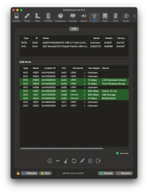7. fai una schermata con hackintool sul tab usb , clicca prima sulla scopetta in basso e poi sulle 2 freccette accanto