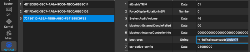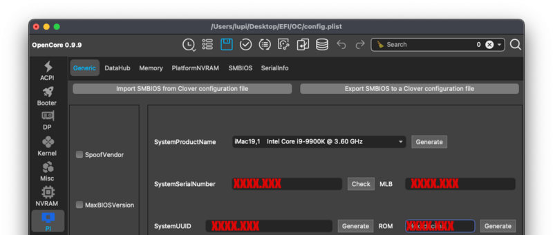 Te l ho detto vedi nel tuo in boot-args alcid=xx ?? e lo inserisci nel mio plist Stessa cosa per i seriali in Platf.Info li copi dalla tua al mio plist