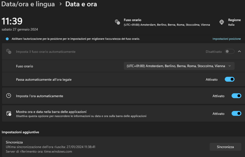 5. Prova su Win a reimpostare l ora ... e a Sincronizzarlo con il Server 🤷‍♂️ ricontrolla l ora del bios e la batt. tampone