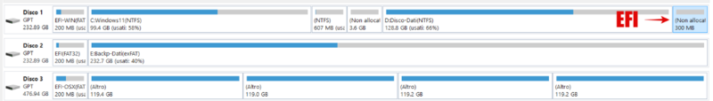 Si vede che quando hai installato Win ti ha messo la EFI nel disco OSX ...Conviene sempre disabilitare OSX quando si installa dopo Win