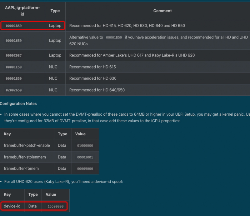 Continui ad usare il frmb di Sky ( non piu' supportata in Ventura ) ... devi usare quello di Kaby https://dortania.github.io/OpenCore-Install-Guide/config-laptop.plist/kaby-lake.html#add-2 Altro esempio https://elitemacx86.com/threads/how-to-enable-intel-skylake-graphics-intel-hd-graphics-515-520-530-540-550-and-580-on-macos-ventura-and-later.928/ Aggiorna i kexts Lilu e Weg ( come tt gli altri )