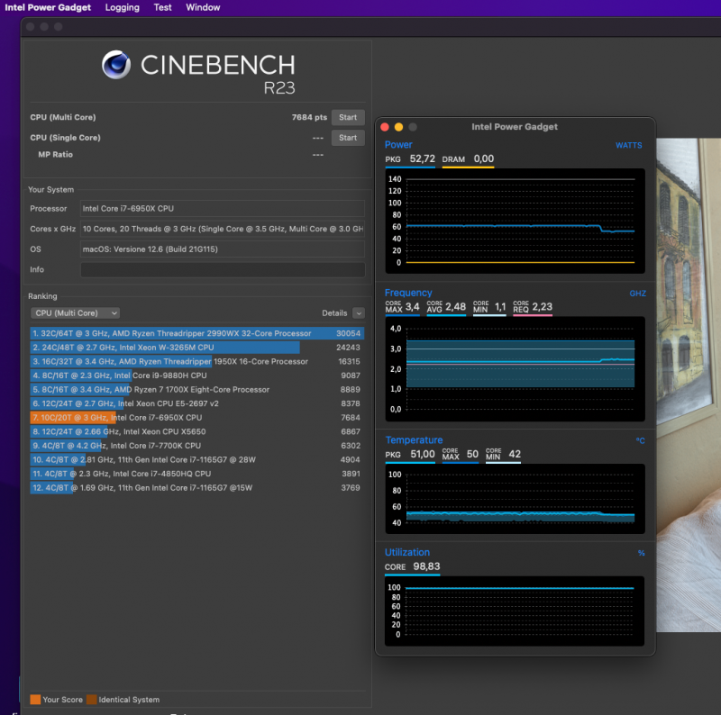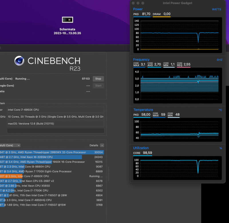@fabiosun fatto i test Cinebench + Inter Power Gadget che allego. Dimmi quando e dove butti il tuo Trx40... lo sleep/wake su Mojave funziona da sempre di brutto... 🤪🤷♂️ la prima è con applicazioni chiuse. La seconda con un progetto audio aperto medio sforzo