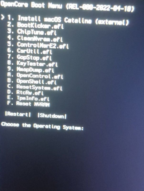 Ok, c'è un altro problema. Stava andando tutto correttamente nell'installazione, finché non si riavviò. Io quindi apro la bootentry in opencore dell'installer nell'ssd, ma mi da un nuovo problema.