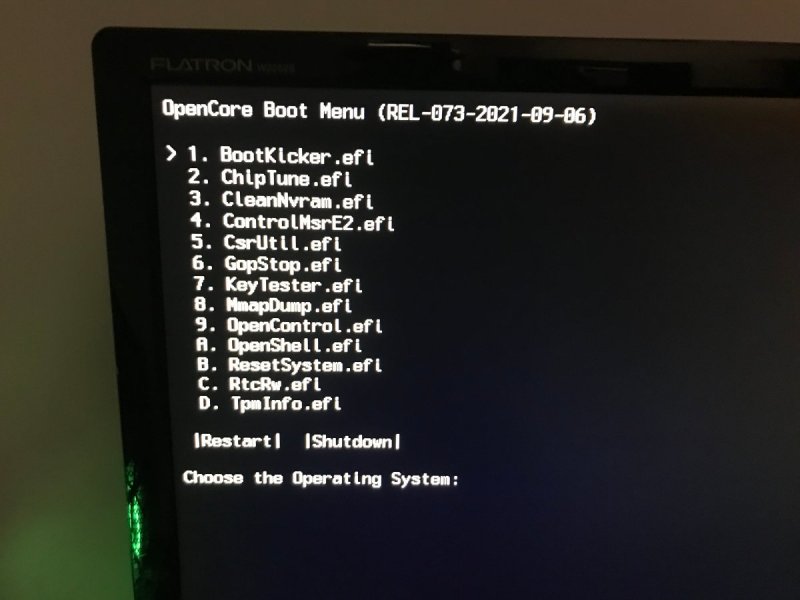 6. rivedendo il file config.plist, ho riscontrato degli errori, correggendoli mi ritrovo con la possibilità di muovere l'indicatore di scelta tra openshell e resetNvram, selezionando openshell mi si apre questo...
