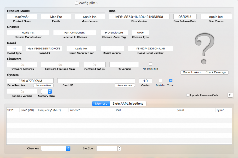 ma lasciare il config.plist standard non equivale a sporcare il codice come fanno i tool di tonymacx86? se li avessi usati dall'inizio avrei risparmiato giorni di madonne che volavano...sono confuso per quanto riguarda l'SMbios sinceramente non so neanche da dove andare a prendere tutti i dati che richiede, faccio confusioni fra quelli reali della scheda madre e quelli fittizzi del mac