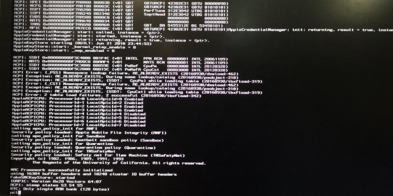 penzo che il dsdt non sia stato compilato correttamente. sulla stessa macchina ho instalato windows con un hd separato, quando collego l'hd di windows non ho nessun problema, quando (a pc spento) sostituisco l'hd di windows e inserisco l'hd di mac os x mi rileva il seguente errore al primo avvio e a tutti gli avvii successivi. dai primi avvii di mac os x mi ha sempre dato questo errore, pensavo dipendesse dal bios che avevo aggiornato contestualmente all'installazione, invece no con widnows va benissimo.
