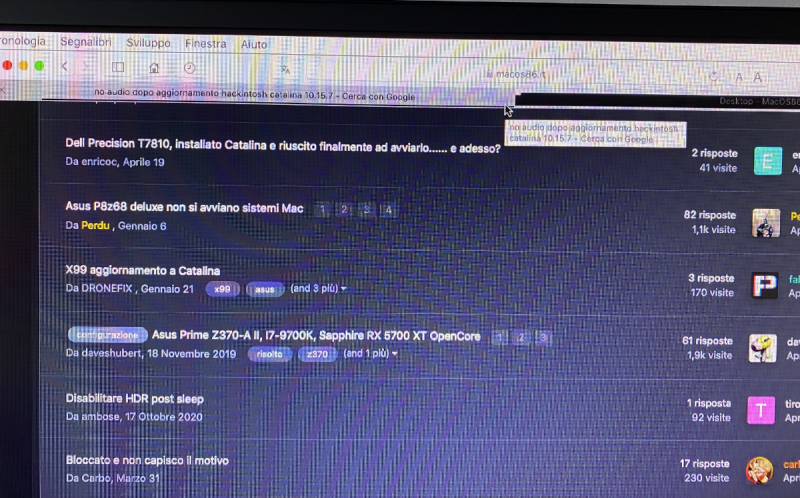 Problemi dopo aggiornamento a Catalina 10.15.7