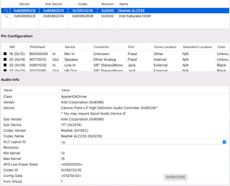 11. Ho appena installato sul nuc di mio nipote l'ultima build (13.2.1) e con la tua EFI per ora non ho accelerazione grafica. l'ig-platform usato in precedenza era 0900A53E così come vedo nel tuo config ioreg.zip