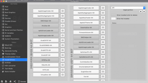 1. ho formattato e ho rifatto l'installazione da 0. Il risultato è che non mi vede nessun hdd, ho aggiunto la spunta apfsdriverloader ma se prima vedevo l'hard disk adesso nemmeno quello. arrabbiati7 arrabbiati19 Vi allego l'efi EFI.zip