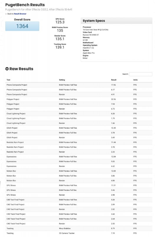 Finally my 6900xt has arrived and I've installed it in my main AMD rig... some benches 😉 Luxmark Cinebench R15 OpenGL PugetBench for AE 66 Blur nodes Candle Test DaVinci Resolve 17 - 30 fps 6 TNR nodes Candle Test DaVinci Resolve 17 - 37 fps Blackmagic RAW 12:1