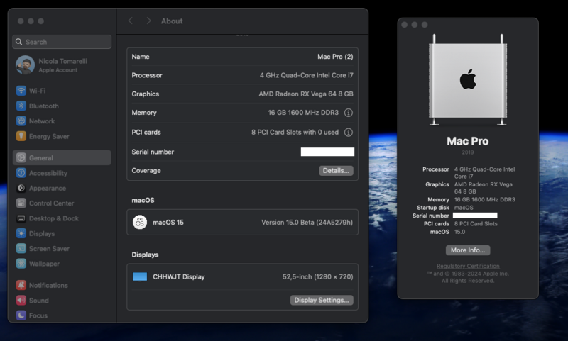 11. Allora non so perché a me non appare più la possibilità di scegliere macOS Sequoia Developer Beta ho i kext di @Lorys89 col flag apposito ma nada, che mi sfugge? Pagare no a quanto pare ehehehe