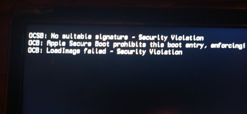 11. Niente da fare sempre stessa scritta di errore preso da log 00:000 00:000 OCUI: Failed to load images for Acidanthera\GoldenGate 00:082 00:082 OC: External interface failure, fallback to builtin - Unsupported 04:125 04:043 OCSB: No suitable signature - Security Violation 04:251 00:126 OCB: Apple Secure Boot prohibits this boot entry, enforcing! 04:274 00:022 OCB: LoadImage failed - Security Violation 09:688 05:414 OCB: LoadImage failed - Not Found