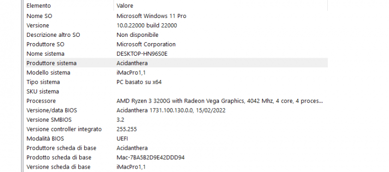 10. ho fatto una prova, ho rimesso la mia config che prima avviava, e nn va piu neanche la mia non vede il disco osx curiosando nel mio sysinfo di win11...... come mai leggo Imac1.1?
