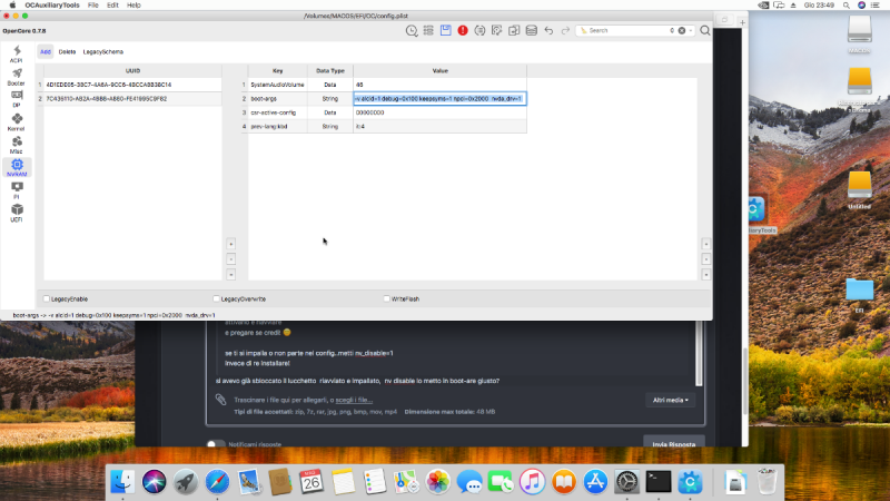 si avevo già sbloccato il lucchetto riavviato e impallato, nv disable lo metto in boot-args giusto? ti ho messo la foto è il caso che cancello qualche comando inutile? -