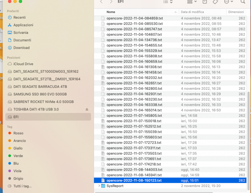 riavviato ok. Questi file opencore-2022-11-08-150123.txt si possono eliminare???