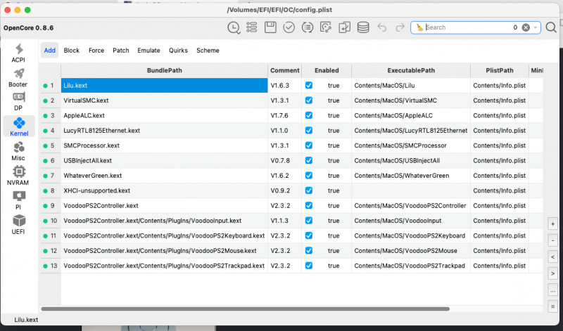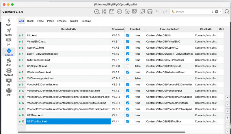 Ho eseguito il programma da win,(non avevo epanso il contenuto nascosto bastava citarlo) non ho usb c, e non ho schede sd. Ho una cartella UTBMap.kext e una cartella USBToolBox.kext che ti allego. Le copio così come sono in OC/kext e poi le abilito nel config??? USBToolBox.kext.rar UTBMap.kext.rar