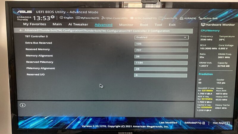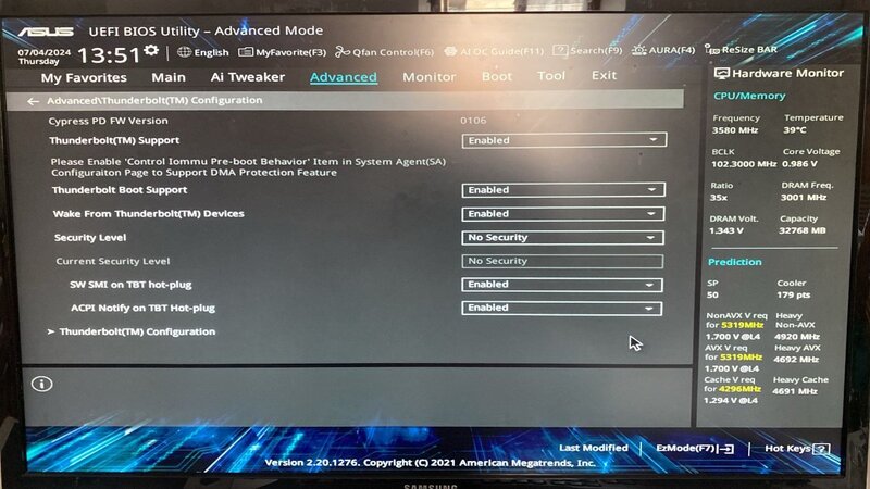 salve a tutti. Dati i problemi riscontrati con la vision d z590 ho deciso di passare alla asus proart z490 per usufruire anche delle thunderbolt in hot plug, vitali per me. quindi ne ho acquistata una, l'ho montata, mi sono basato su una efi gentimelmente offerta nel gruppo da @DomyIT, ma sfortunatamente resta piantato nella pagina iniziale. Ho ovviamente tolto il fast boot, controllato che csm fosse disabilitato, messo come primary display peg, abilitato t4 decoding e vt-d, e impostato i settaggi consigliati per le thunderbolt. Vi posto la EFI sperando in un vostro gentile aiuto... non so piu dove sbattere la testa anche perchè dovrei rimettermi a lavorare ad alcuni progetti. EFI.zip