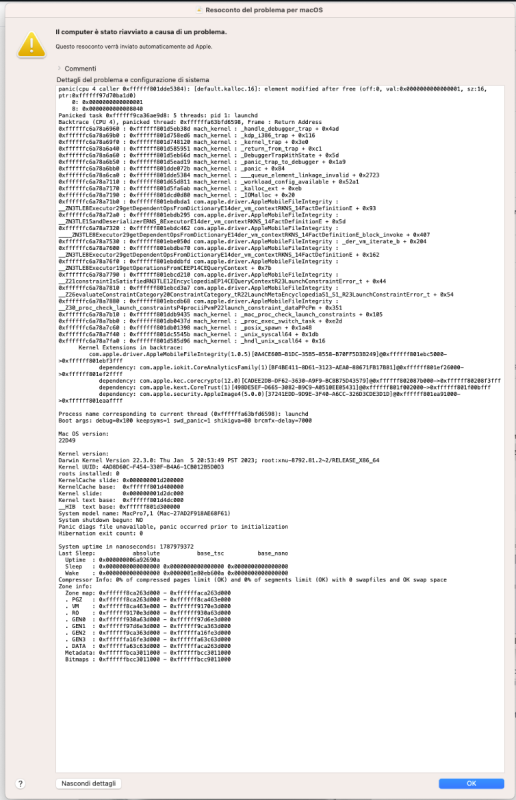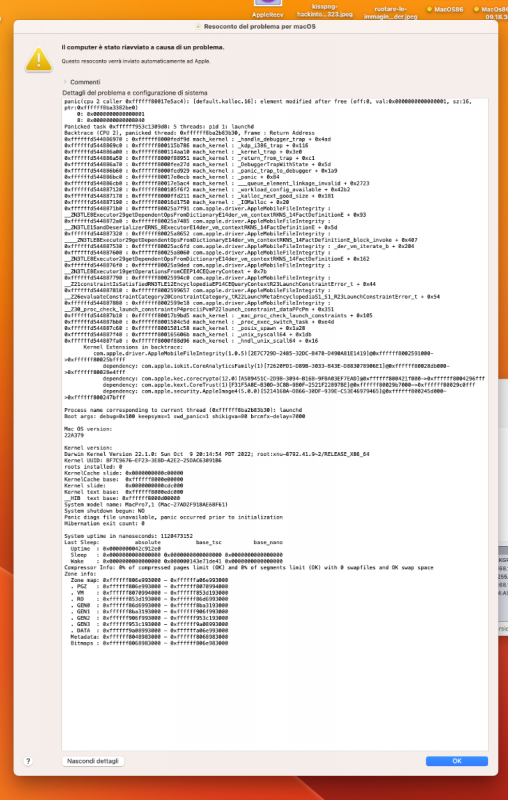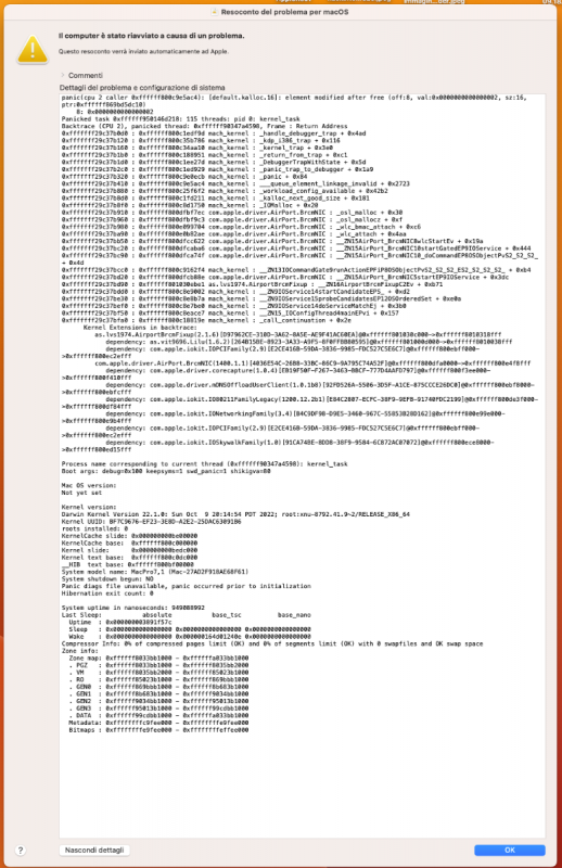 13. Stamattina purtroppo si è ripresentato il problema ma sul report del KP è cambiato il Kext in backtrace, che adesso sono diversi. Sono perplesso.