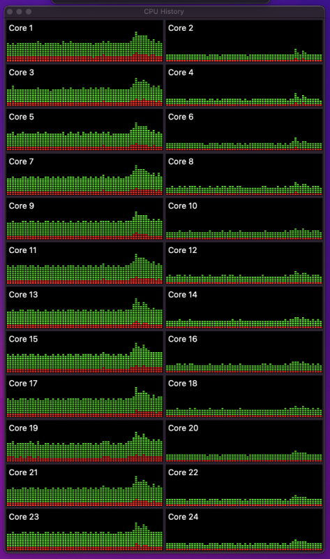 6. While exporting 4K H264 25min video, only 12 of 24 cores are working on the activation monitor, the other 12 cores are sleeping. Is it possible to speed it up and optimize the settings?