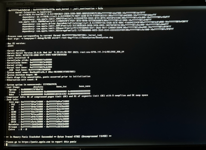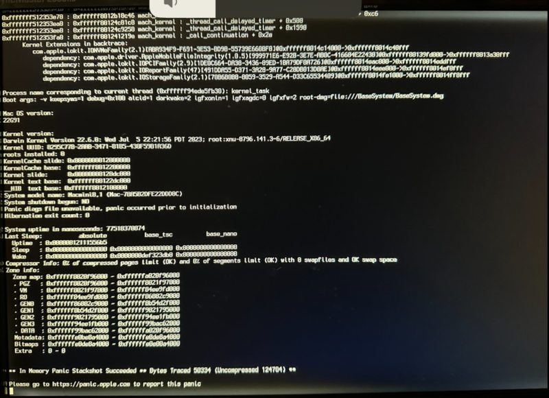 nemmeno con i base, ho provato sia con il tuo plist e sia il mio, facendo refresh, andando a rimuovere le patch degli APCI e i MIMO... niente da fare, Kernel Panic... 😭😭😭 una cosa mi son dimenticato di scrivere, questo pc ha solo porte usb3, quando ho provato la prima volta l'installazione si bloccava e non capivo... poi leggendo guide varie ho visto i problemi che potevano dare le usb3 quindi visto che sto pc ha 2 slot m2 (occupato 1) ed una porta sata ho collegato un disco da 230gb sata dove ho messo l'installazione di MacOS ventura. ho creato il disco di installazione usando il terminale da un altro mac.