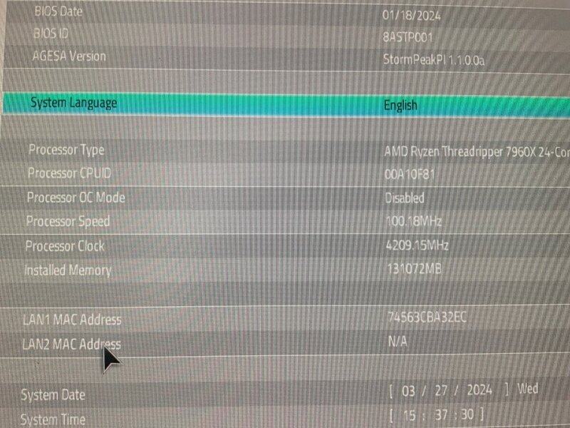 7. I checked to make sure IOMMU was disabled as was SIP…still no AQ 10GbE Odd…the BIOs reports LAN2 MAC Address as N/A