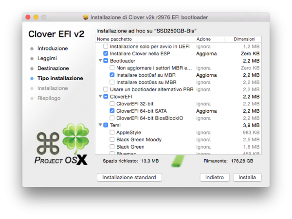 13. Dipende, se clover è installato in legacy devi prima installarlo e poi sostituire la cartella efi con la tua, se è in UEFI ti basta solo copiare la tua cartella all’interno della partizione efi