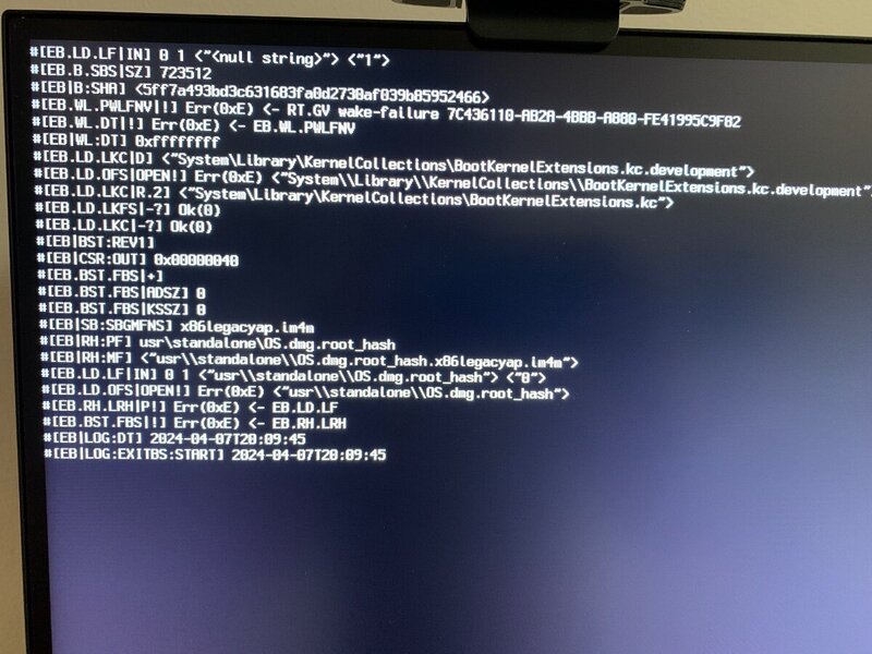 Hello @Lorys89, Thank you for your files. I used this EFI to boot the installation, but it is stuck at the same point as before. Please see the log in the attached file. I will test another your EFI folders too. opencore-2024-04-07-012751.zip