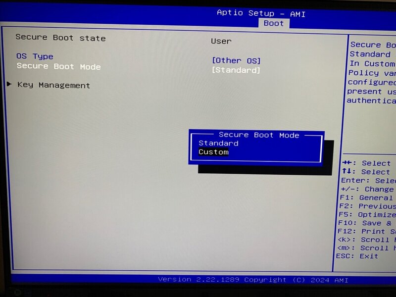Hello @Lorys89, Thank you for your EFI file, but it is still stuck as before. I found that the secure boot mode only has two options: Standard and Custom (tried disabling both of them), and there is no option to disable secure boot mode like on another motherboard. Do you think this is the main issue? If yes, how could I define a custom user secure boot.