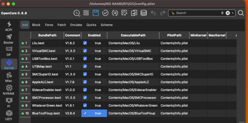 10. Ok, avevo usato OpenCore Configurator ed in effetti non mi mostrava nulla!