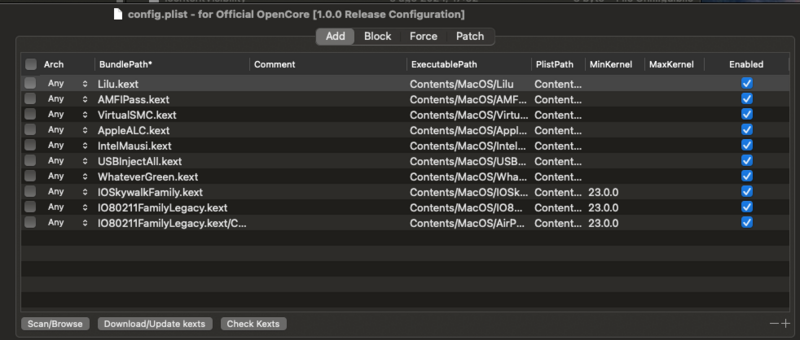 Grazie per i suggerimenti ma il WI-FI continua a non funzionare dai un occhiata se è tutto corretto: Come vedi non ho messo amfi=0x80 in quanto ho aggiunto il kext AMFIPass ma ho aggiunto -amfipassbeta ho resetto NVRAM accendo e avvio il patch ma il wifi rimane morto. Un ultima cosa uso anche altre versioni di mac avevo letto nel post che vanno specificati i block e i MinKernel cosa di preciso se uso Big Sur e Ventura devo impostare qualcosa di particolare?
