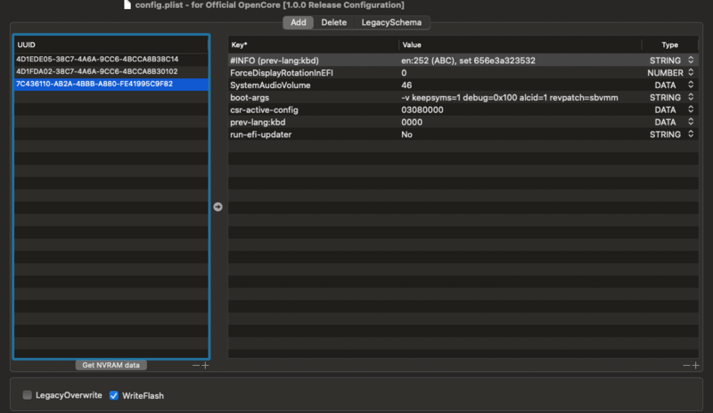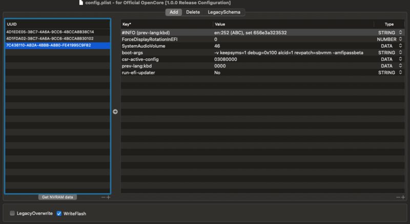 **Configurazione:** - CPU: Intel(R) Core(TM) i5-9600K CPU @ 3.70GHz - GPU: Sapphire Nitro AMD RX580 - Scheda madre: ASUS MSI Series Pro Z390 - Sistema operativo attuale: Catalina / Big Sur / Ventura Installazione di Sonoma al momento Fallita. Ciao a tutti, sto cercando di installare macOS Sonoma su un sistema Hackintosh utilizzando OpenCore 1.0.1, ma ho riscontrato un problema durante il processo di installazione. Ho scaricato la versione di Sonoma la 14.6 ho eseguito il comando per creare la chiavetta USB di installazione, usando: sudo /Applications/Install\ macOS\ Sonoma.app/Contents/Resources/createinstallmedia --volume /Volumes/USB --nointeraction Successivamente ho preparato OpenCore EFI Scaricato l'ultima versione di OpenCore dal repository ufficiale su GitHub. Copiato la cartella EFI aggiornata sulla chiavetta USB. Configurato il file config.plist utilizzando editor ProperTree. Ho provato sia Impostando su Misc - Picker Mode in Boot sia External che Builtin quindi attivando o disattivando il Driver OpenCanopy.efi Impostato XhciPortLimit su true, funziona per me Compilato PlatformInfo utilizzando il programma GenSMBIOS. Ho quindi aggiunto i vari Kexts tra cui: AppleALC.kext IntelMausi.kext Lilu.kext USBInjectAll.kext VirtualSMC.kext WhateverGreen.kext Ho seguito la Guida di Coffe Lake configurato correttamente per gli altri 3 sistemi. Ma durante l'installazione ottengo dei messaggi di errori allego il log della chiavetta, in sostanza la prima parte è corretta e come se poi ad un certo punto non copia i file e in loop prova a copiare gli stessi file senza successo: 00:000 00:000 AAPL: #[EB.H.IS|!] Err(0xE) <- RT.GV boot-signature 7C436110-AB2A-4BBB-A880-FE41995C9F82 00:036 00:036 AAPL: #[EB.H.IS|!] Err(0xE) <- RT.GV boot-image-key 7C436110-AB2A-4BBB-A880-FE41995C9F82 00:075 00:038 AAPL: #[EB|H:IS] 0 00:119 00:044 AAPL: #[EB|LOG:INIT] 2024-08-08T19:58:42 00:283 00:163 AAPL: #[EB|VERSION] <"bootbase.efi 580.140.1~8 (Official), built 2024-06-29T04:01:27-0700"> 00:321 00:038 AAPL: #[EB|BUILD] <"BUILD-INFO[406]:{"DisplayName":"bootbase.efi","DisplayVersion":"580.140.1~8","RecordUuid":"CE64F4BE-AE76-4EAD-9193-9B193BB7A7CF","BuildTime":"2024-06-29T04:01:27-0700","ProjectName":"efiboot","ProductName":"bootbase.efi","SourceVersion":"580.140.1","BuildVersion":"8","BuildConfiguration":"Release","BuildType":"Official","Compiler":"clang-1500.3.9.1","SdkVersion":"14.6","SdkBuild":"23G65","TargetArchitectures":"x86_64"}"> 00:360 00:038 AAPL: #[EB.CFG.DEV|!] Err(0xE) <- RT.GV booter-strict-xmlparser 7C436110-AB2A-4BBB-A880-FE41995C9F82 00:399 00:039 AAPL: #[EB|CFG:DEV] r5 0x0 0x0 00:437 00:038 AAPL: #[EB|H:IS] 0 00:476 00:038 AAPL: #[EB|WL:MODE] 0 00:515 00:038 AAPL: #[EB|CFG:ARG] boot-save-log 0x0000000000000002 (0x0000000000000002 < 0xFFFFFFFFFFFFFFFF) default 00:554 00:038 AAPL: #[EB|CFG:ARG] wake-save-log 0x0000000000000002 (0x0000000000000002 < 0x0000000000000002) default 00:593 00:038 AAPL: #[EB|CFG:ARG] console 0x0000000000000001 (0x0000000000000001 < 0x0000000000000001) default 00:636 00:043 AAPL: #[EB|CFG:ARG] serial 0x0000000000000001 (0x0000000000000001 < 0x0000000000000000) default 00:675 00:039 AAPL: #[EB|CFG:ARG] preoslog 0x0000000000000001 (0x0000000000000001 < 0xFFFFFFFFFFFFFFFF) default 00:713 00:038 AAPL: #[EB|CFG:ARG] timestamps 0x0000000000000000 (0x0000000000000000 < 0xFFFFFFFFFFFFFFFF) default 00:752 00:038 AAPL: #[EB|CFG:ARG] log-level 0x0000000000000001 (0x0000000000000001 & 0x0000000000000021) default 00:790 00:038 AAPL: #[EB|CFG:ARG] breakpoint 0x0000000000000000 (0x0000000000000000 & 0x0000000000000000) default 00:833 00:042 AAPL: #[EB|CFG:ARG] kc-read-size 0x0000000000100000 (0x0000000000100000 < 0xFFFFFFFFFFFFFFFF) default 00:872 00:038 AAPL: #[EB|CFG:ARG] force-error 0x0000000000000000 (0x0000000000000000 & 0x0000000000000000) default 00:910 00:038 AAPL: #[EB|H:IS] 0 00:949 00:038 AAPL: #[EB|WL] 0 0 0x01 0x01 0 0x00 00:988 00:039 AAPL: #[EB|BRD:NV] Mac-7BA5B2D9E42DDD94 01:027 00:038 AAPL: #[EB|B:VAw] 01:066 00:038 AAPL: #[EB|B:IAw] 01:105 00:038 AAPL: #[EB|WL] 0 0 0x01 0x01 2 0x00 01:144 00:039 AAPL: #[EB.BST.IDT|+] 01:188 00:044 AAPL: #[EB|BM] J137AP 01:229 00:040 AAPL: #[EB.BST.IDT|-] 01:267 00:037 AAPL: #[EB|WL] 0 0 0x01 0x01 3 0x00 01:305 00:038 AAPL: #[EB|WL] 0 0 0x01 0x01 4 0x00 01:349 00:043 AAPL: #[EB|BRD:NV] Mac-7BA5B2D9E42DDD94 01:501 00:151 AAPL: #[EB|WL] 0 0 0x01 0x01 5 0x00 01:538 00:037 AAPL: #[EB.H.CHK|BM] 0x0000000000000000 01:578 00:039 AAPL: #[EB.H.LV|!] Err(0xE) <- RT.GV boot-signature 7C436110-AB2A-4BBB-A880-FE41995C9F82 01:617 00:039 AAPL: #[EB|WL] 0 0 0x01 0x01 23 0x0E 01:656 00:039 AAPL: #[EB.H.LV|!] Err(0xE) <- RT.GV boot-image-key 7C436110-AB2A-4BBB-A880-FE41995C9F82 01:695 00:038 AAPL: #[EB|WL] 0 0 0x01 0x01 24 0x0E 01:734 00:039 AAPL: #[EB.H.LV|!] Err(0xE) <- RT.GV boot-image 7C436110-AB2A-4BBB-A880-FE41995C9F82 01:774 00:039 AAPL: #[EB.H.LV|!] Err(0xE) <- RT.SV- boot-signature 7C436110-AB2A-4BBB-A880-FE41995C9F82 01:813 00:039 AAPL: #[EB.H.LV|!] Err(0xE) <- RT.SV- boot-image-key 7C436110-AB2A-4BBB-A880-FE41995C9F82 01:854 00:041 AAPL: #[EB.H.LV|!] Err(0xE) <- RT.SV- boot-image 7C436110-AB2A-4BBB-A880-FE41995C9F82 01:894 00:039 AAPL: #[EB|H:NOT] 01:932 00:038 AAPL: #[EB|SB:P] 0x1 01:971 00:038 AAPL: #[EB.B.MN|BM:+SB] 02:014 00:043 AAPL: #[EB|LIMG:DP] Acpi(PNP0A03,0)/Pci(17|0)/SATA(5,FFFF)/HD(Part2,Sig0D5C4C52-AF08-43CB-9936-19ADCB9F7B08)/VenMedia(BE74FCF7-0B7C-49F3-9147-01F4042E6842) 02:052 00:037 AAPL: #[EB|LIMG:FP] \DF07C0A1-670E-431F-8CCE-28FCBC50EDDA\com.apple.installer\boot.efi 02:091 00:038 AAPL: #[EB|LIMG:OPT] 02:130 00:038 AAPL: #[EB.OPT.LXF|F] <"\\DF07C0A1-670E-431F-8CCE-28FCBC50EDDA\\com.apple.installer\\com.apple.Boot.plist"> 02:169 00:038 AAPL: #[EB.LD.LF|IN] 0 1 <"\\DF07C0A1-670E-431F-8CCE-28FCBC50EDDA\\com.apple.installer\\com.apple.Boot.plist"> <"0"> 02:208 00:039 AAPL: #[EB|KF] <"-no_panic_dialog -restore -logOnCrash -rootdmg-ramdisk auth-root-dmg=file:///com.apple.installer/x86_64SURamDisk.dmg"> 02:247 00:038 AAPL: #[EB|MBA: