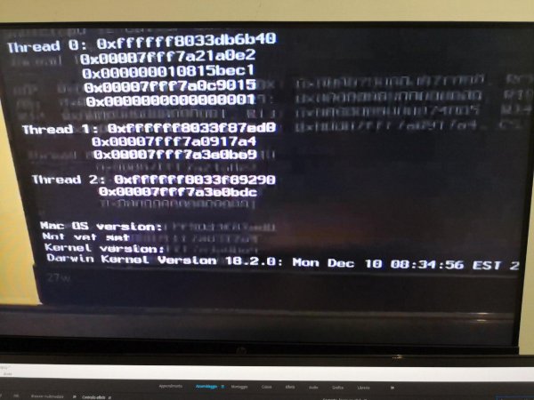 allora kernel e prelinked ho messo quelli dello zip che mi avete postato voi qualche post indietro......... credo fossero per mojave...esistono differenti per highsierra ho fatto una registrazione dello schermo in moviola... questi sono gli ultimi fotogrammi prima del riavvio