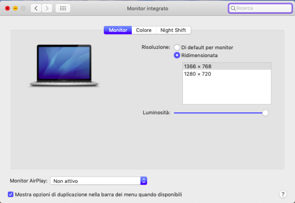 ora il portatile non si pianta, ma la risoluzione dello schermo è scarsa ed il monitor viene rilevato come se fosse un imac e non un macbookpro. di conseguenzala memoria video è di soli 3mb e la risoluzione è fissa.