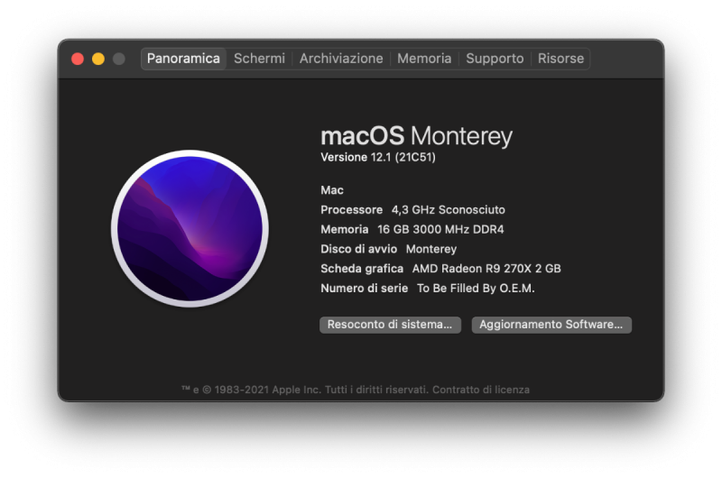 Grazie @Gengik84 , DisableRtcChecksum è su YES , avevo provato comunque a metterlo anche su No ma non cambia nulla , ho visto che hai scaricato il IOReg quindi presumo che da li vedi se è caricato un ssdt , te lo riallego appena fatto , forse quello precedente l'ho preso prima di caricare uno dei due SSDT , per quanto riguarda il port mapping non so che dirti , mi era venuto in mente Monterey perché ora fanno la stessa cosa anche gli altri pc e su questi la mappatura a suo tempo l'avevo fatta. iMac Pro di Nicola.zip