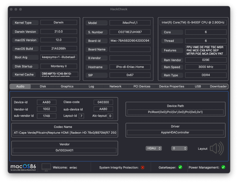 9. Con alcid definisci quale è il canale che vuoi usare per la tua scheda audio definita in deviceproperties, di solito si usa 1 o 7 ma possono essercene diversi altri . Per quanto riguarda l'errore che hai con OCcompare non so aiutarti io uso solo il validate, magari qualcuno più esperto potrà illuminarti 🙂 A meno che tu non stia usando una versione di OCcompare non relativa alla versione di OC