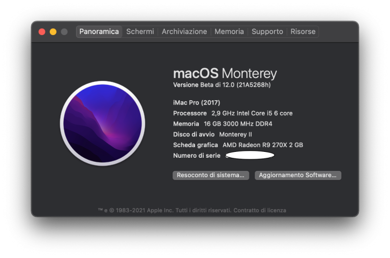 1. A mente fredda ora ho "l'impressione" che tutto il casino sia dovuto al fatto che la prima installazione di Monterey io l'ho fatta aggiornando una installazione di BigSur più che installare pulito. Ieri sera quando ho formattato ho visto che il disco incriminato oltre che contenere una partizione "dati" di Monterey aveva dentro anche una partizione dati del precedente BigSur, ora come ho detto è una mia impressione quindi prendetela con le pinze , dovrei fare una installazione pulita della beta 1 e riprovare ma al momento non se ne parla, in due giorni tra aggiornamenti e pacchetto completo ho tirato giù qualcosa come 30 Gb , devo far respirare un po il modem se no fonde 😄😄