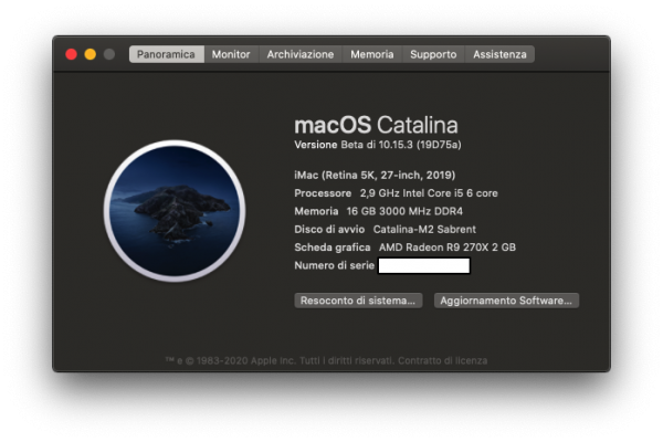 All'accensione se collego i due monitor , il primo su DP ed il secondo su HDMI ho uscita video su DP , il sistema si avvia regolarmente e funziona su DP , su HDMI non ho uscita con Catalina, mentre su Windows funzionano entrambi perfettamente.