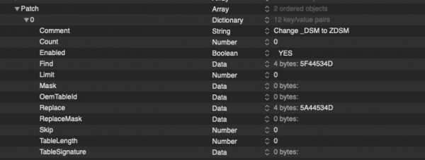 Perfetto, adesso il ssdt per hack viene correttamente caricato, ovviamente errore mio, avevo messo 1 su count... adesso vedo per sistemare il drop della tabella OEM delle usb 😉