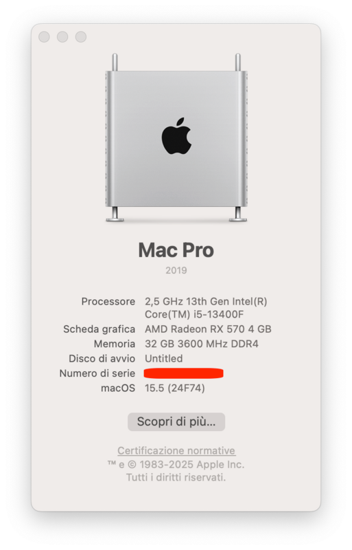 ho messo macpro 7,1 ma con questo SMBios l'aggiornamento non lo vede proprio...