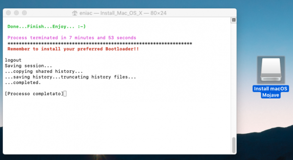 era andato tutto liscio , comunque ho già rifatto tutta la chiavetta 2 volte ma il risultato è sempre lo stesso, ma mi sta venendo un dubbio, per scaricare l'installer sono andato su app store ed ho cercato Mojave , poi ho selezionato ottieni ed è partita la verifica degli aggiornamenti e poi da li l'ho scaricato, non è che considerandolo un aggiornamento mi ha scaricato un installer fatto esclusivamente per aggiornare ? Purtroppo la versione che avevo scaricato prima l'ho persa ed ho dovuto riscaricarla di nuovo....