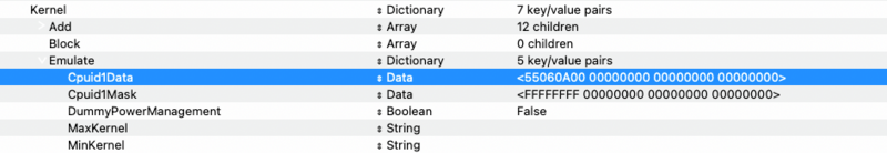 Buongiorno e grazie mille per avermi risposto. Dunque: Per quanto riguarda le CPU sopra la 10 generazione (quindi 11th, 12th, 13th e 14th) i valori per lo spoof del CPUID sono sempre gli stessi e vanno inseriti nell'apposita sezione Kernel/Emulate. Più nello specifico: Banalmente, questo "55060A00" è il CPU ID delle CPU di 10 generazione, che risultano nativamente compatibili con macOS (o meglio col kernel Darwin). Senza questo spoof, ti troveresti bloccato nella famosa schermata del pre-verbose: Assolutamente si, vedi sopra. Il discorso si applica a tutte le CPU Intel superiori alla 10 generazione (quindi 11th, 12th, 13th e 14th) Questo va disattivato tramite BIOS dove applicabile (a tal proposito ho scritto una guida pubblica che puoi consultare qui: https://github.com/dreamwhite/bios-extraction-guide) ma occhio che su alcune schede madri (come ad esempio diversi laptop Lenovo e purtroppo anche in alcune schede madri desktop recenti Z690 e Z790) il CFG Lock risulta non sbloccabile, ergo sei costretto ad utilizzare la patch per il CFG Lock (AppleXcpmCfgLock) altrimenti rimarrai bloccato sulla schermata "pre-verbose" come da foto sopra. Personalmente non sono un amante degli SSDT pre-made (che siano dell'utente da te citato o dell'admin di craprila), dato che a mio avviso devi conoscere a fondo quello che stai mettendo nell'EFI e sopratutto perchè. Aggiungere cose senza sapere cosa facciano e come mi sembra controproducente se il tuo obiettivo è quello di capire le cose a fondo. Per quello che ti posso dire in merito alle ACPI, senza darti direttamente la "pappa pronta" è di aggiungere queste tabelle: - SSDT-AWAC-DISABLE - SSDT-EC-USBX - SSDT-PLUG-ALT come minimo per poter avviare macOS. Trovi la documentazione sia sul repository ufficiale di acidanthera/OpenCorePkg (link GitHub) che sulla pagina di dortania/Getting-Started-with-ACPI (link sito ufficiale dortania). Anche qui non mi trovi d'accordo purtroppo su OCAT. Per quanto sia un software molto comodo per modificare il config.plist, pur non essendo invasivo come OCC (OpenCore Configurator), lo ritrovo sempre controproducente se vuoi capire come modificare il config.plist usando editor plist meno "performanti" o "esteticamente brutti" come ProperTree. D'altronde, una volta che hai identificato: - tabelle ACPI - che vanno nella cartella EFI/OC/ACPI - Driver - che vanno nella cartella EFI/OC/Drivers - Kext - che vanno nella cartella EFI/OC/Kexts aggiungerle tramite ProperTree è davvero una passeggiata (premendo Command-E e selezionando la cartella EFI). Concludo dicendo che se hai bisogno di una mano per realizzare l'EFI non esitare ad allegare su questo thread il tuo SysReport così potremo aiutarti 🙂 Dimenticavo... Quale RX 6600 avresti intenzione di acquistare? Potresti allegare il link del prodotto o una foto? Per Sonoma non ci sono problemi, ma in generale per macOS occhio alla RX 6600 (o 6600 XT) che compri, dato che diverse Sapphire serie 66xx danno problemi col VBIOS