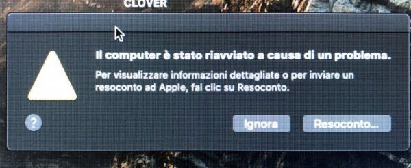 ciao a tutti, ho un problema con l'hack: ogni volta che riavvio, mi esce questo errore.. mi ci buttate un'occhio nella EFI? 😬 Grazie! CLOVER.zip ps: 10.15.4 + W10