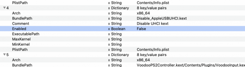 Ho cercato in giro, e ho visto che nel mio DSDT sono presenti da USB1 a USB6 - difatti questi sono i controller gestiti dal kext che panica... If you look deeper in your IOReg, you'll noticed that: EUSB@fd000000 is associated with IOClass AppleUSBEHCIPCI, i.e. USB2.0 ports. Under that, you have your USB2.0 webcam for instance. All USBn ports under are associated to IOClass AppleUSBUHCIPCI, i.e. they're UHCI (i.e. USB1) ports USBE@fa000000 is associated with IOClas AppleUSBEHCIPCI, i.e. USB2.0 ports. Under that specific USBE hub, there are 6 ports located @fa1 to fa6 You can Google for USB types and the way they're managed under OS X. Here for instance. Fonte: https://www.insanelymac.com/forum/topic/315114-im-a-newer-someone-can-help-me-fix-my-dsdt-for-usb20thinks/?do=findComment&comment=2279049