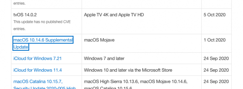 Link alla pagina: https://support.apple.com/kb/DL2059?viewlocale=en_US&locale=en_US Link diretto: https://updates.cdn-apple.com/2020/macos/001-72527-20201102-6b739fd5-5685-4d8d-96ca-50f762cab6c3/SecUpd2020-006HighSierra.dmg -