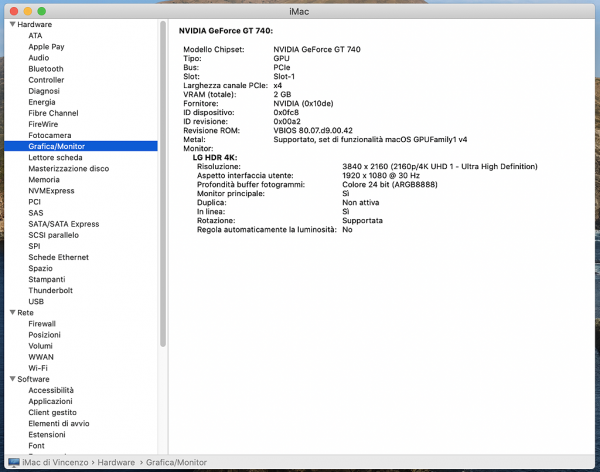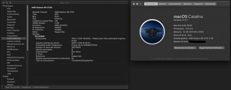 Salve a tutti, ho un piccolo problema con la configurazione in firma, HP Z230, con la scheda integrata va tutto a meraviglia (grazie a @iCanaro), ho installato la scheda grafica Sapphire R9 270 e all'avvio non riesco a vedere il bios. Ho due dischi con due installazioni separate Win10 e Catalina, riesco ad avviare i due sistemi pigiando a memoria i tasti al boot e tutto funziona, la scheda viene riconosciuta da tutti e due i sistemi operativi. Il problema del bios però rimane, non ho la la voce CSM (almeno non c'è nessun riferimento a questo). Il bios è aggiornato all'ultima versione disponibile. Ho provato collegato in HDMI e DVI ma non cambia. config.plist.zip grazie e buone feste. michele